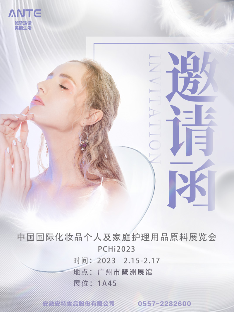 2023PCHI中國國際化妝品個人及家庭護理用品原料展,安特在廣州琶洲展館1A45展臺等您!
