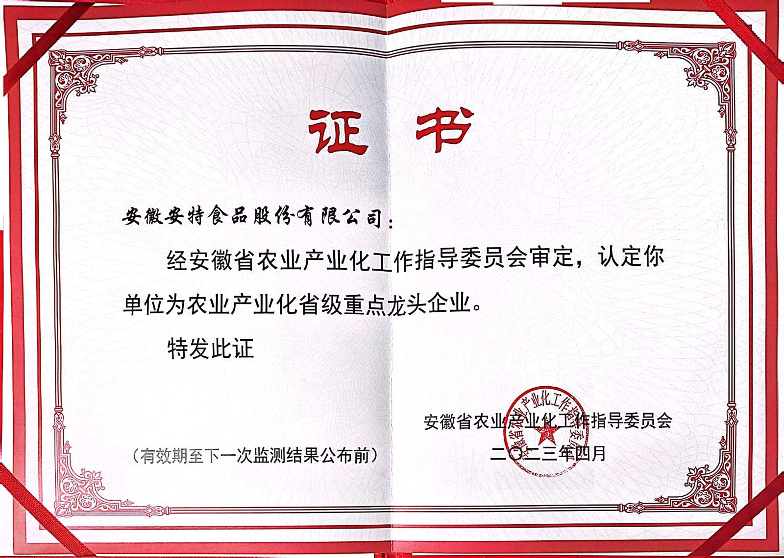 公司再次獲評“農業產業化省級重點龍頭企業”
